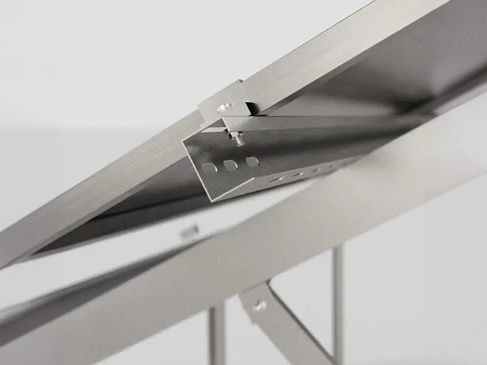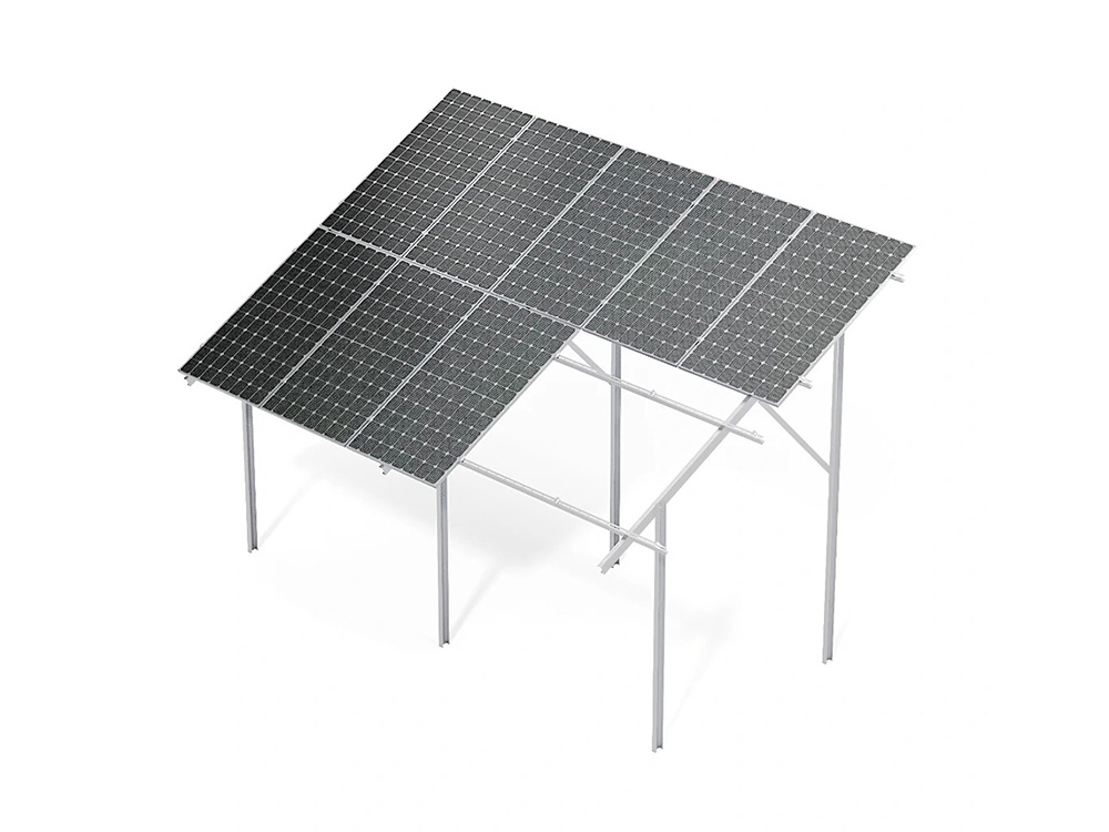 Die freistehende, zweifach gestützte Konstruktion aus Magnelis-Stahl gewährleistet langfristige Korrosionsbeständigkeit und Systemstabilität. Der optimale Neigungswinkel von 30° erhöht den Energieertrag der Photovoltaikmodule.